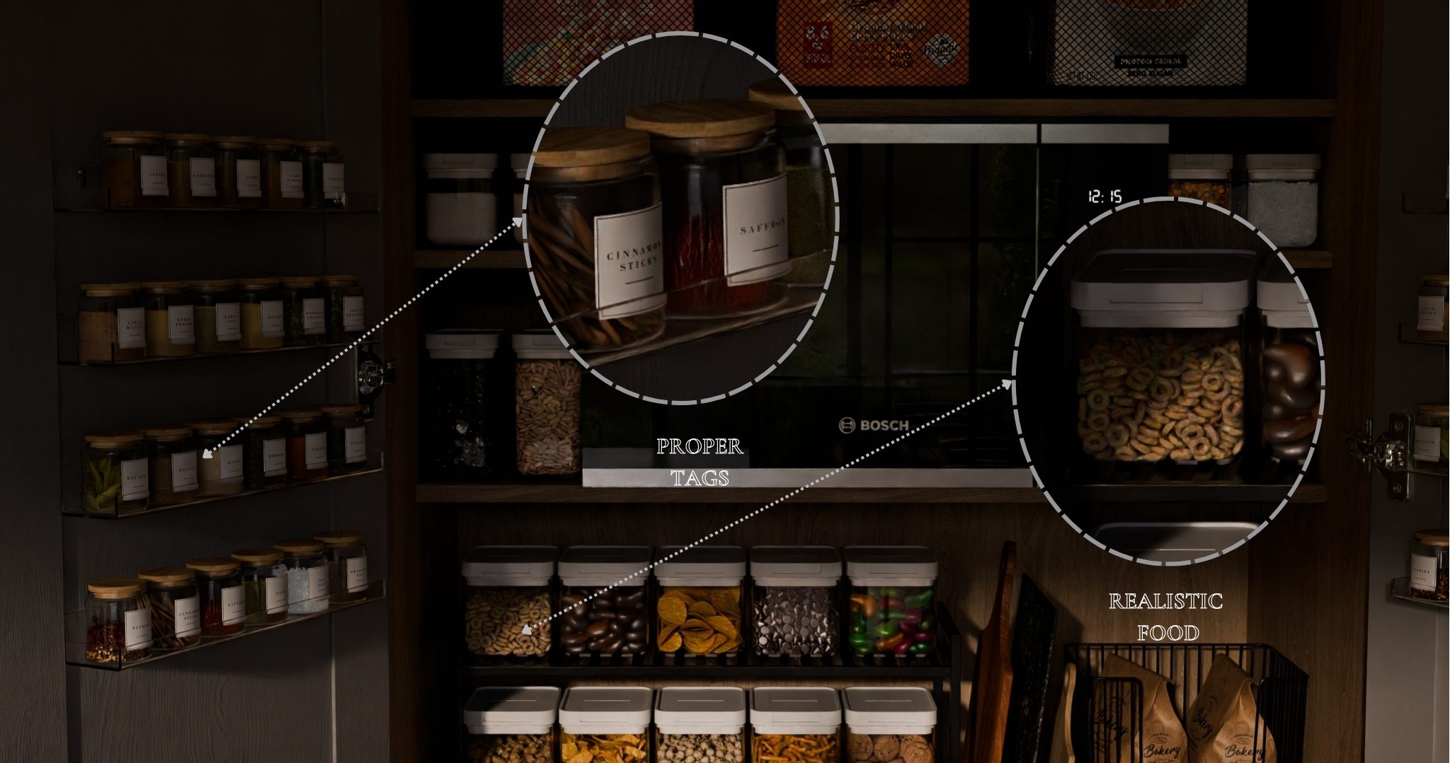Experience lifelike food textures, branded appliances, and accurately tagged small items, delivering unmatched authenticity in every shot.