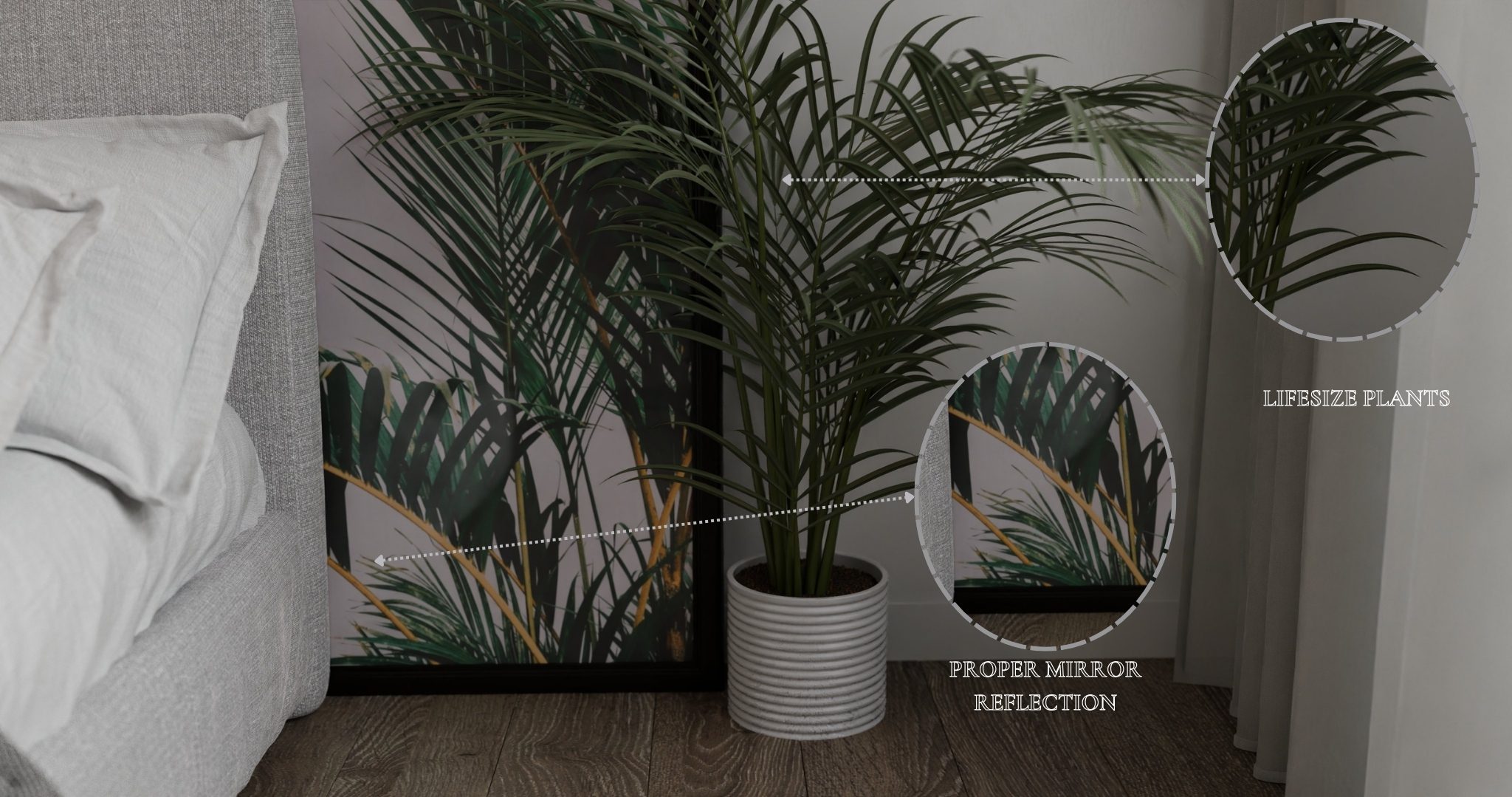 Realistic lifelike plants and physics-accurate mirror reflections combine to create scenes full of dynamic realism.